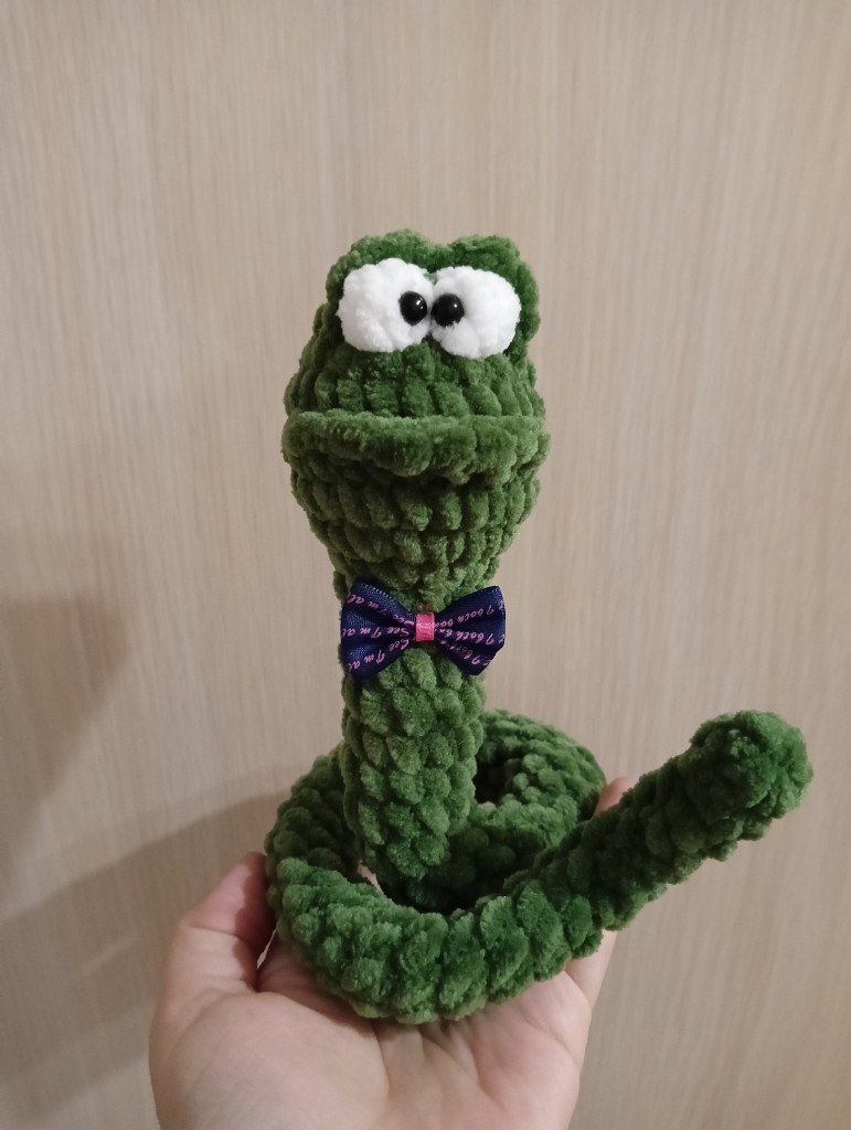 Мои змейки. Вязались к Новому году, поэтому в шапках и с бокалом:)