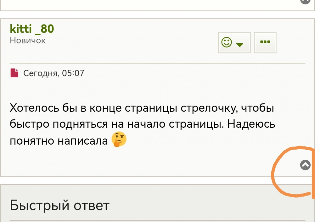 Хотелось бы в конце страницы стрелочку, чтобы быстро подняться на начало страницы. Надеюсь понятно написала 🤔