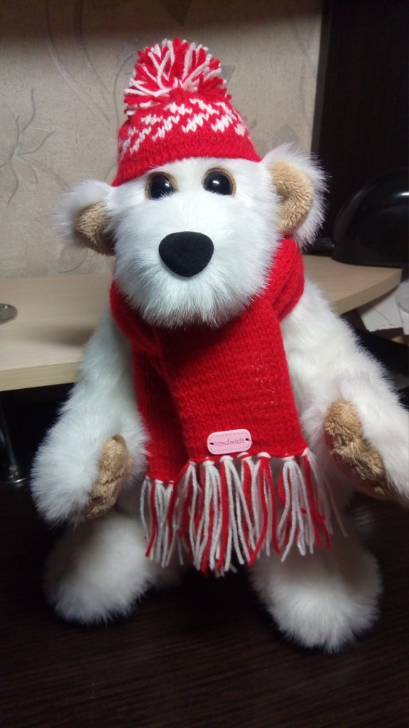 Рост мишки 18 см. Материалы: вискоза, опилки, древесная шерсть, гранулят, шплинтовое крепление головы и лап.