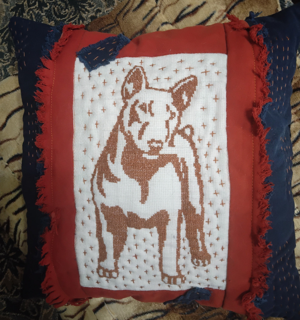 Подарила братьям по подушке. Вышила по любимому животному,оформила в подушки.