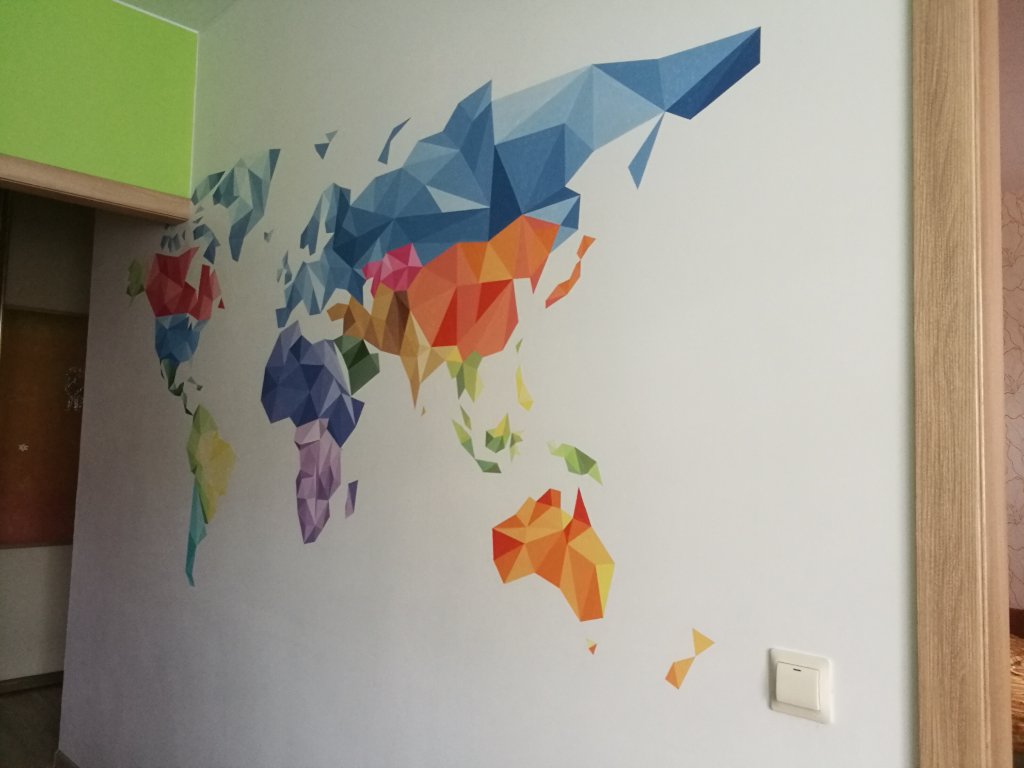 Во время ремонта решила сделать что-нибудь этакое и расписала стену, а поскольку я очень люблю путешествовать, решила, что это будет карта мира