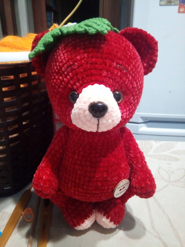 Со всей любовью мишка ягодка Ани Садовской. Связан из Детской новинки, цвет Самшит, рост 16 см стоя.