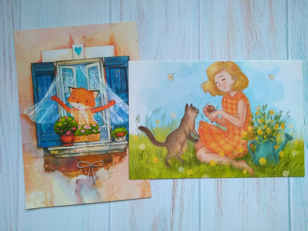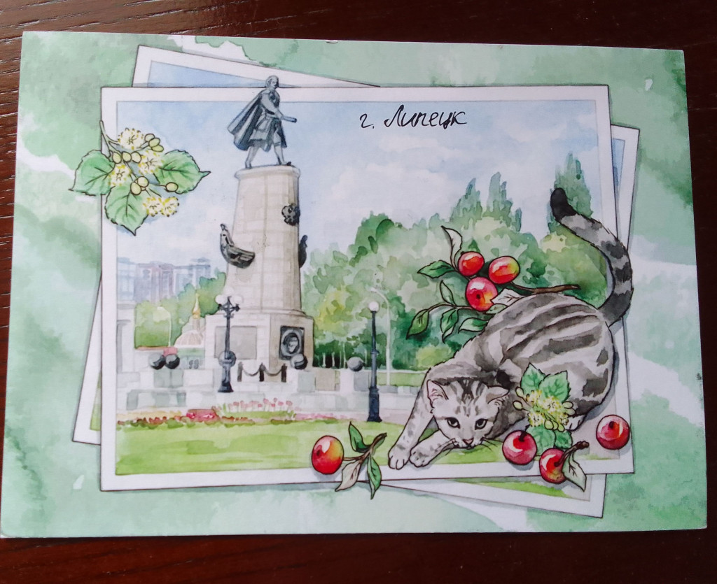 От Тани @Почтискрыльями так желанную мной открыточку с котиком в города