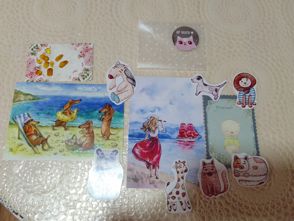 Милые зверята, календарик, наклеечки и чудесная ретро малышка! Спасибо большое дорогая, очень нравятся :adore: