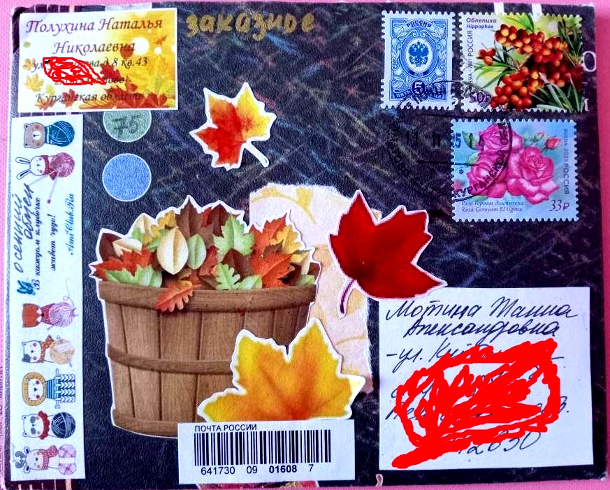 От Юленьки @Ю.Ю. пришёл очень красивый конверт по осеннему обмену. Как же я люблю осенние открытки, они просто чудо