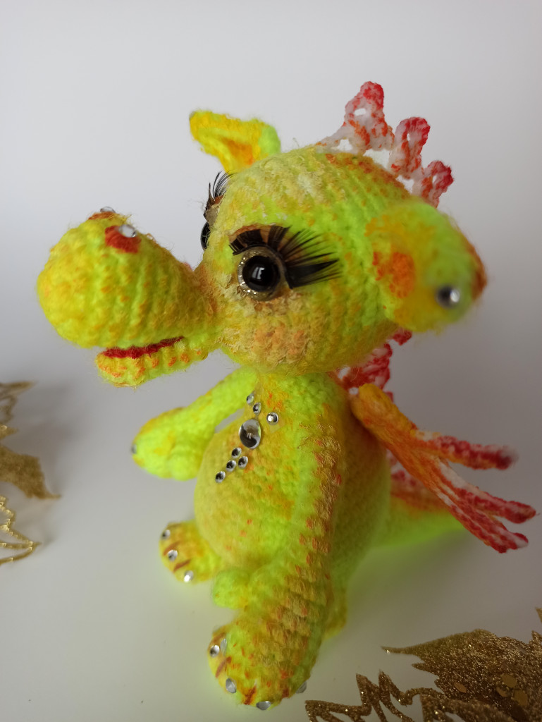Часики связаны по мастер-классу Елены Щербаковой, дракончик связан по мастер-классу Елены Салдиной в конце 2022 года