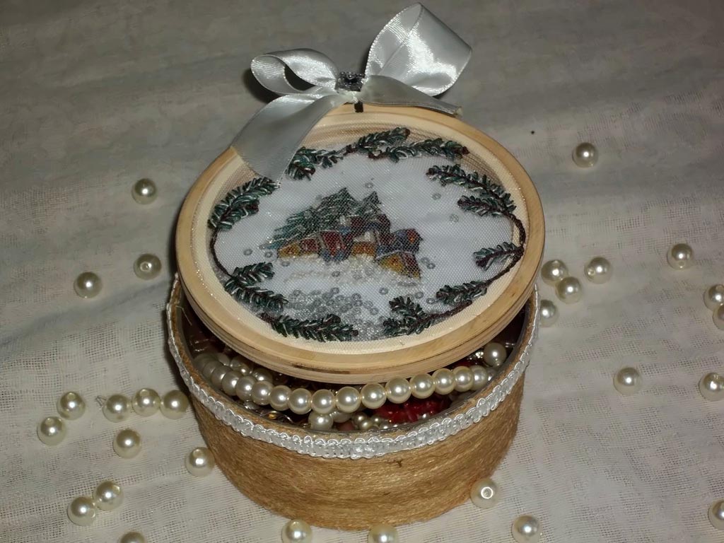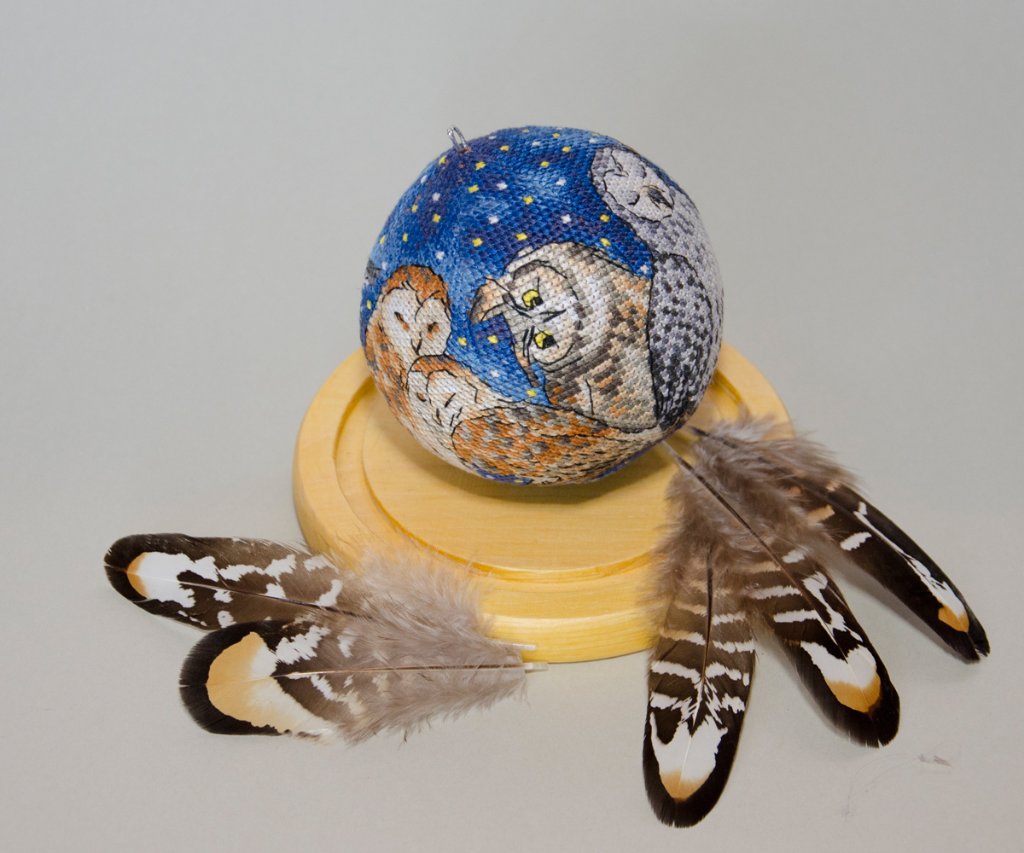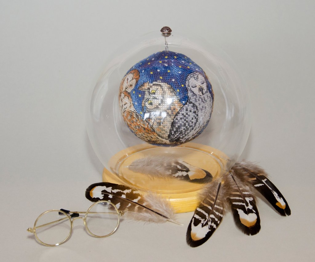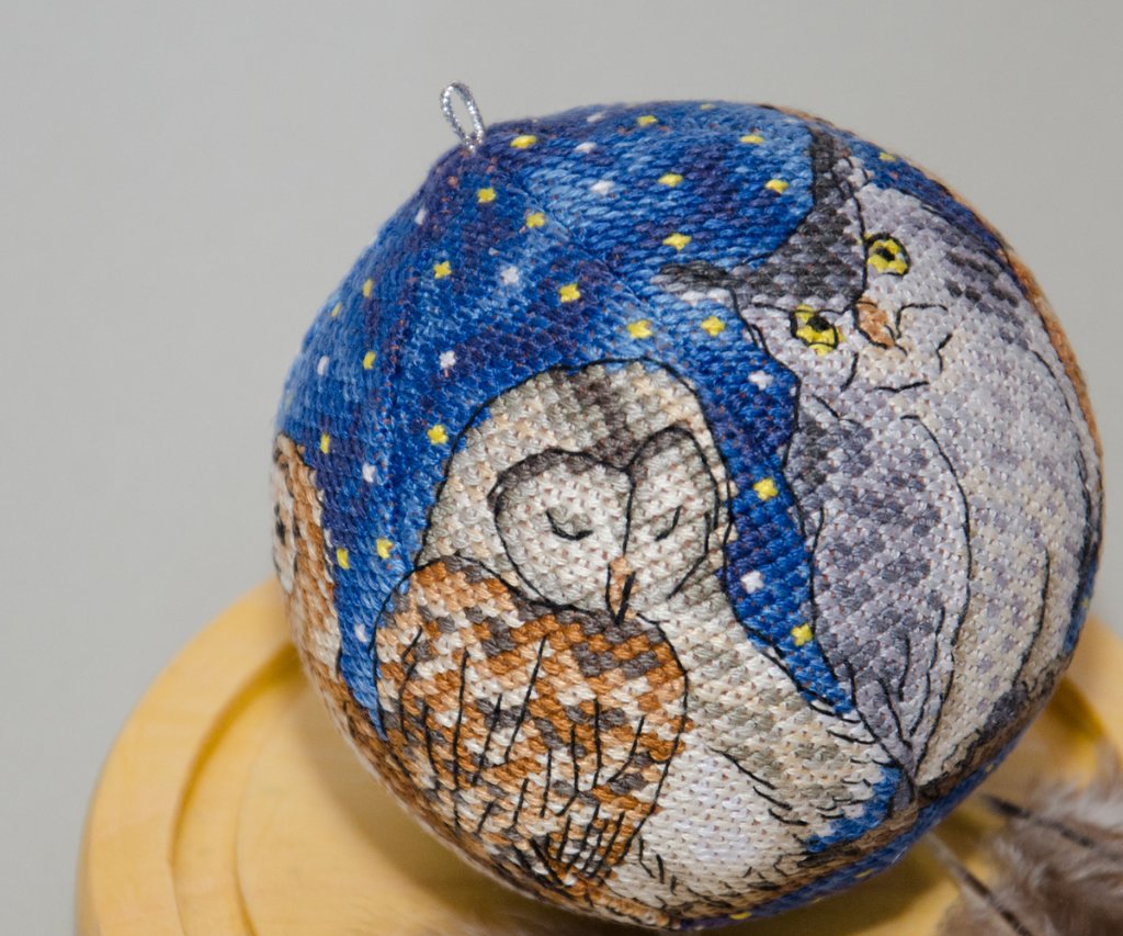 Шарик от Марины Хачановой (RinkaZee) - В ночном небе. Вышивала для своей тетушки на День рождения. Оформила в стеклянный шар, который специально для этой работы заказывала на AliExpress.