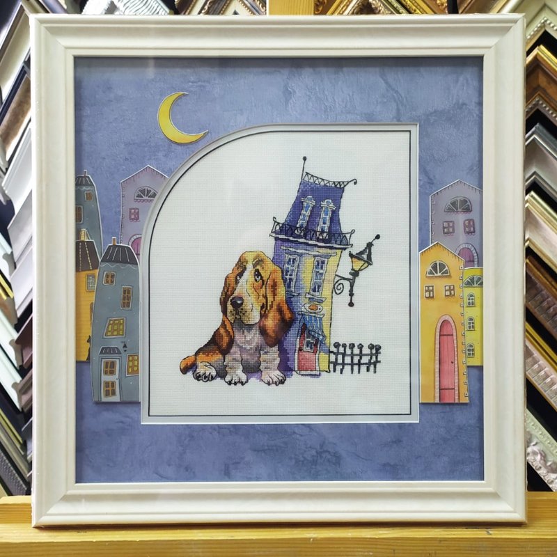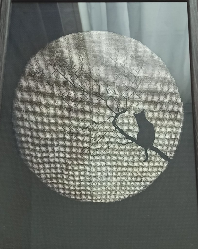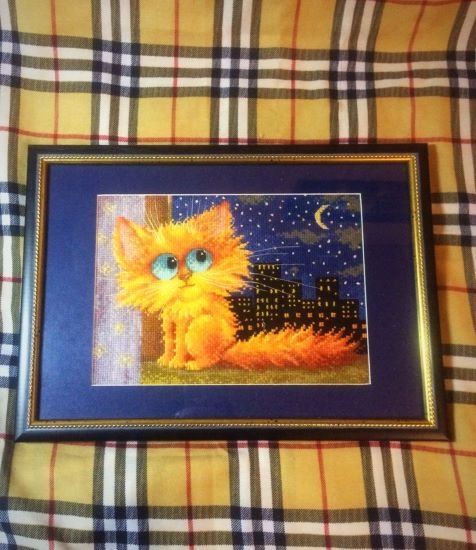 Рыжий котик - вышивка "Лунный вопрос" автор дизайна Tascha Volk по мотивам иллюстрации Любови Ерёминой-Ношин