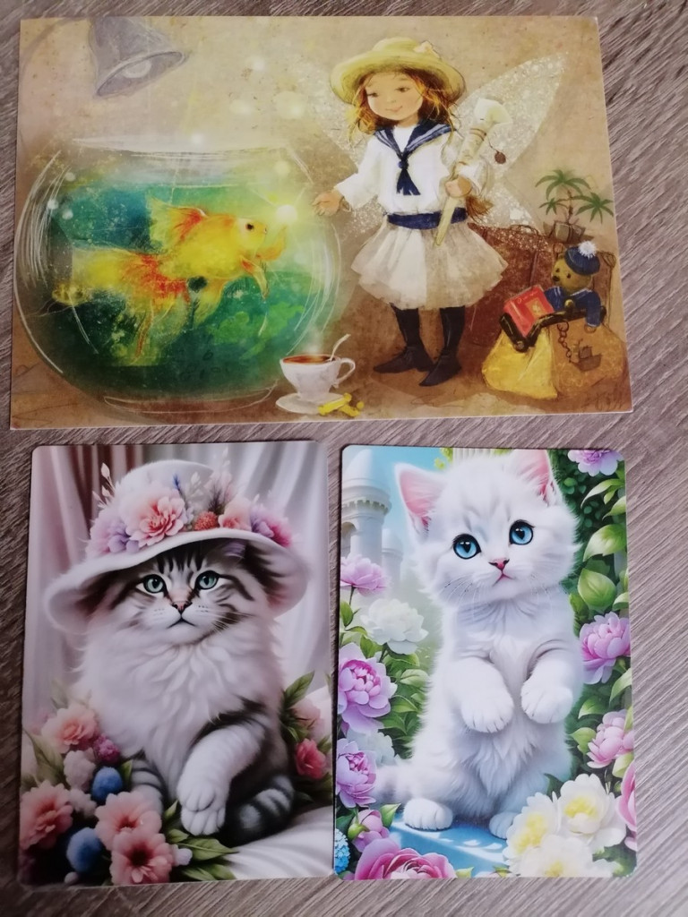 Я получила два конвертика: один от Оли @lelyoka72 по обмену вот с такими чудесными открытками и наклеечками