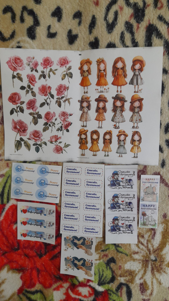 От Наташи @totoshka я тоже получила гигантский конверт с поздравлениями и подарками. Чего там только нет: открытки, марки, наклейки, распечатки, конверты - настоящее богатство :adore: