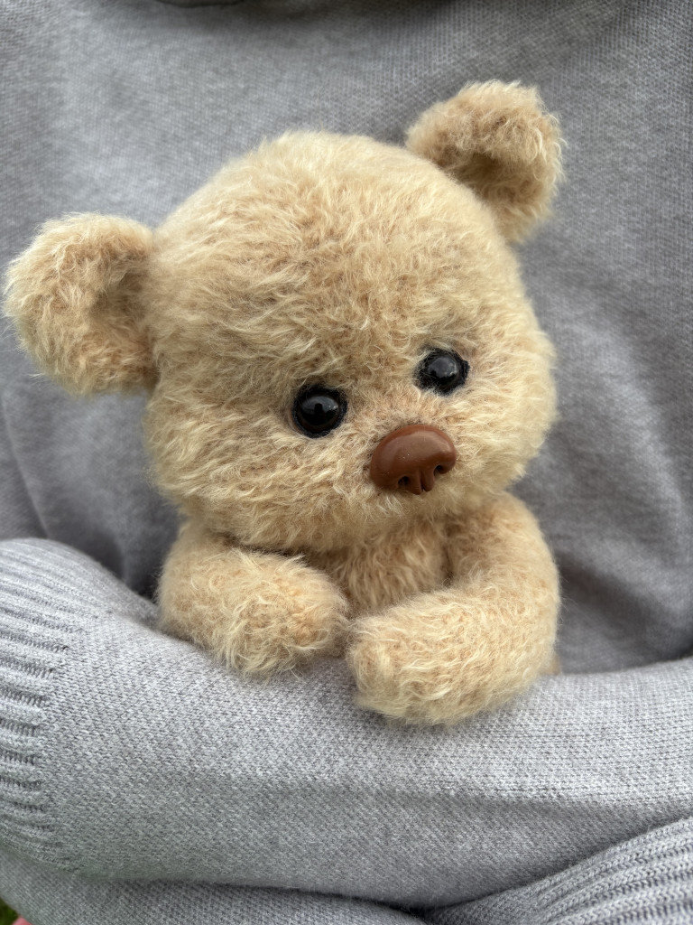 Мишка сидя 9 см, голова и лапы на шплинтах, тонирован маслом. МК Наты Ташлыковой.