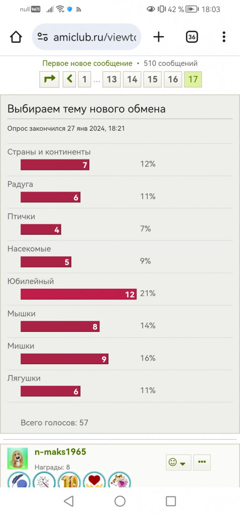 ну ты же написала Пойдёмте голосовать по первому вопросу наверх ну я и смотрю на верху голосовалка за книжный обмен жала жала ничего, написала тебе, а сейчас смотрю - голосовалка то от 24 года,Мисс Кэт писал(а): ↑05 фев 2026 11:06 Так, девочки... Я тут для истории зафиксирую результаты нашего голосования.