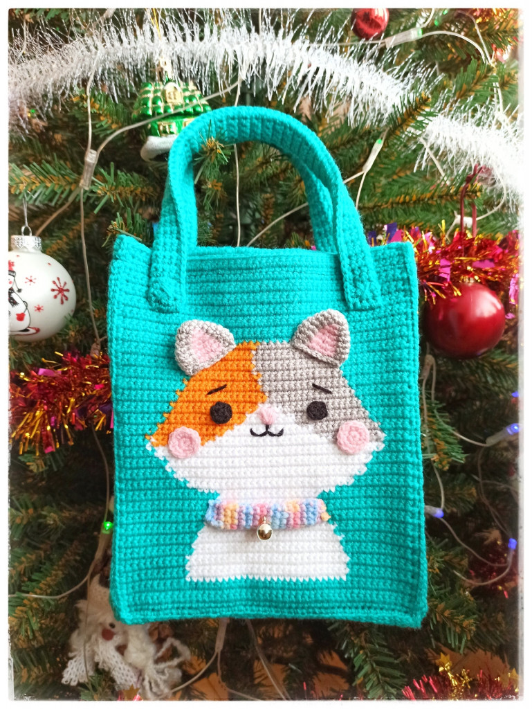 Изначально это было маленькое панно, как и задумывал автор МК (GatoMiaCrochetaria). Но мне подумалось, что мелкой племяшке оно и на фиг не надо, а вот сумочка... )))) Я и подкладку в ней сделала. Да котейке бубенец повесила. Сама сумка из Детской Новинки связана.