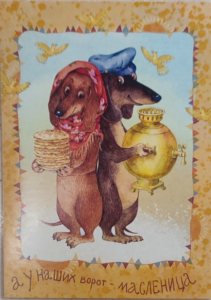 Третий конверт от Юли @Просто мама. В нём открытка по обмену "Мать и дитя" с чудесными лисичками и поздравление с масленницей, ещё подарочки.