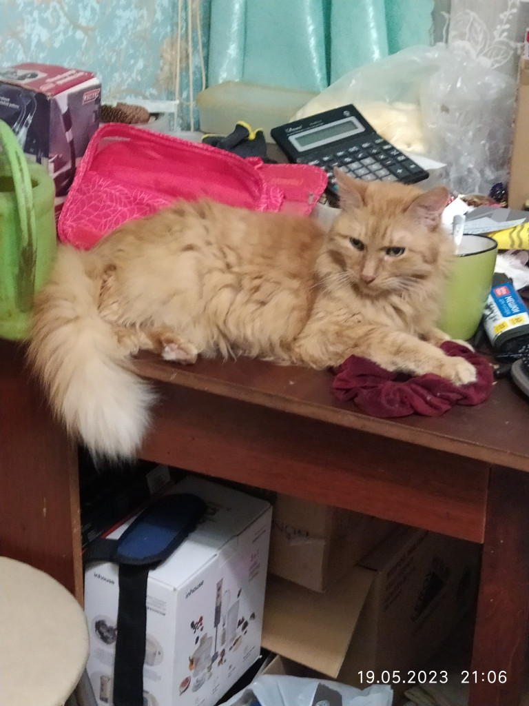 Это наши питомцы, рыжий старый был, прожил с нами 19 лет. Дети прожили с ним всю сознательную жизнь. Он с ними закончил школу, с дочерью закончил институт, выдал ее замуж, с сыном закончил колледж,дождался из армии.А черный тепличное растение. Родился на даче, пришлось этот урожай тоже собрать