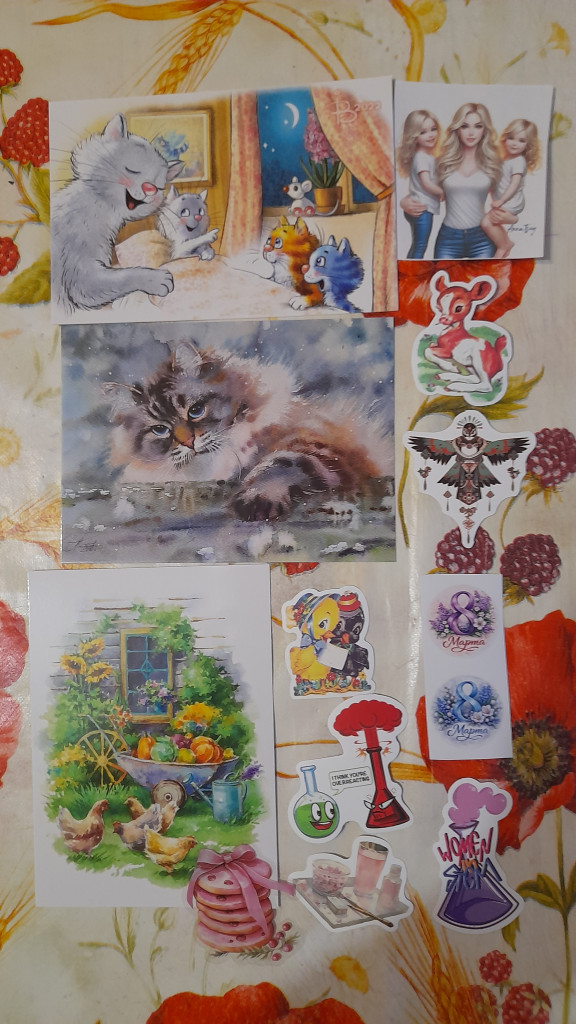 Девочки, всех с нашим весенним праздником, хоть и немного с опозданием!!! Как и обещала, конверт от Жанны @nisana открыла именно 8 марта. А в нём чудесные открытки Катерины Ольховской, красавица рысь и много разных нужностей для украшения :adore: