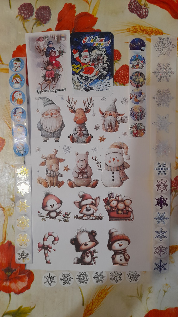 С- Снеговик, А - Алкоголь, Н - Натюрморт, К - Коньки, И - Игрушка. Каждая открыточка подписана, украшена.