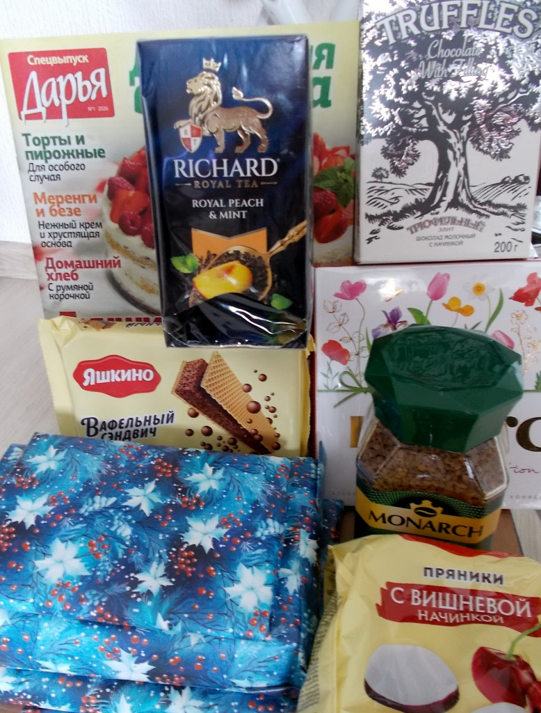 От Саши получила сплошные вкусняшки:чай, кофе и кучу сладкого под детективы)))