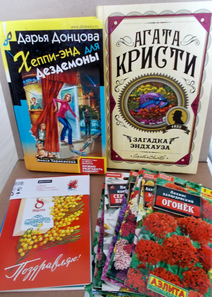 , а ещё открыточки, кулинарный журнал и много семян цветов.