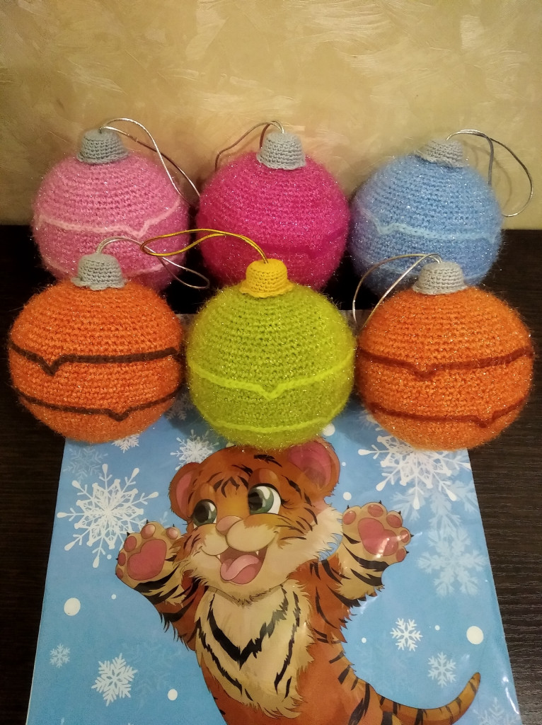 В 2021-м навязала много новогодних шариков на ёлку, и раздарила родственникам. Ниточки YarnArt CHRISTMAS и adelia BRILLIANT, основа - пенопластовые шарики. Придумала сама, времени на что-то серьёзное уже не оставалось