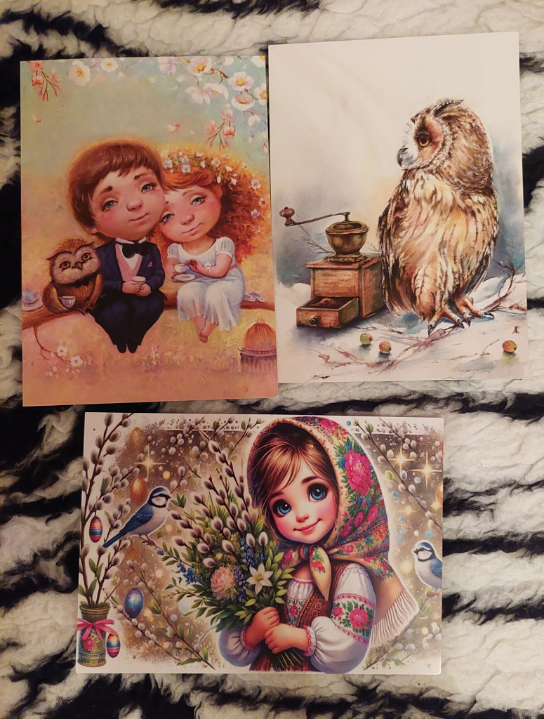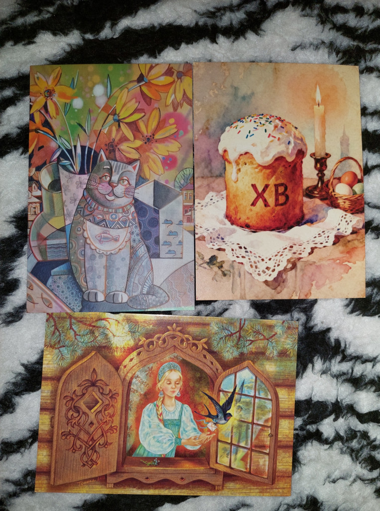 От Жанны @nisana пришёл пухленький конвертик, а в нём поздравление с Пасхой, много птичек, котики и Катерина Ольховская