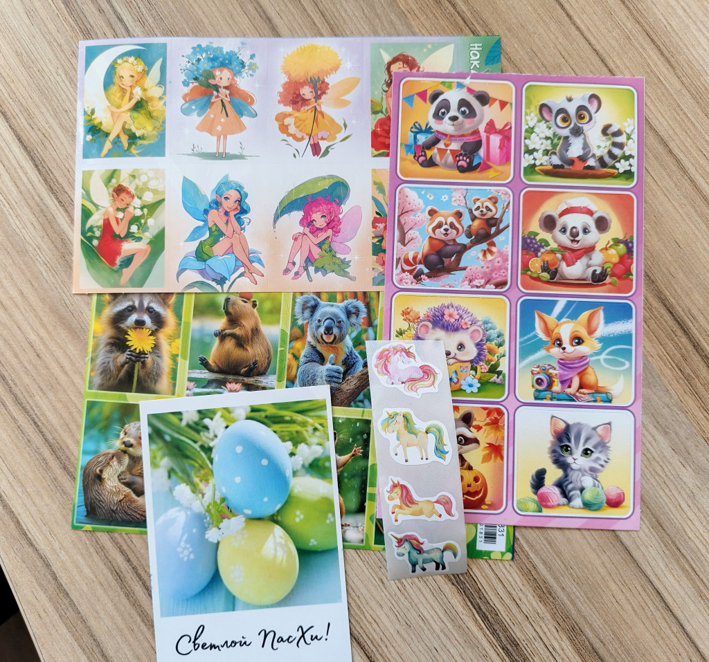 Оля даже прислала одежку яичкам! И кучу наклеечек