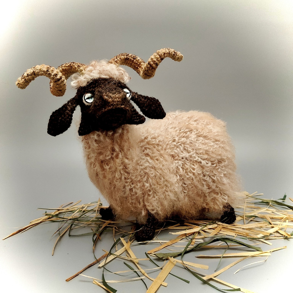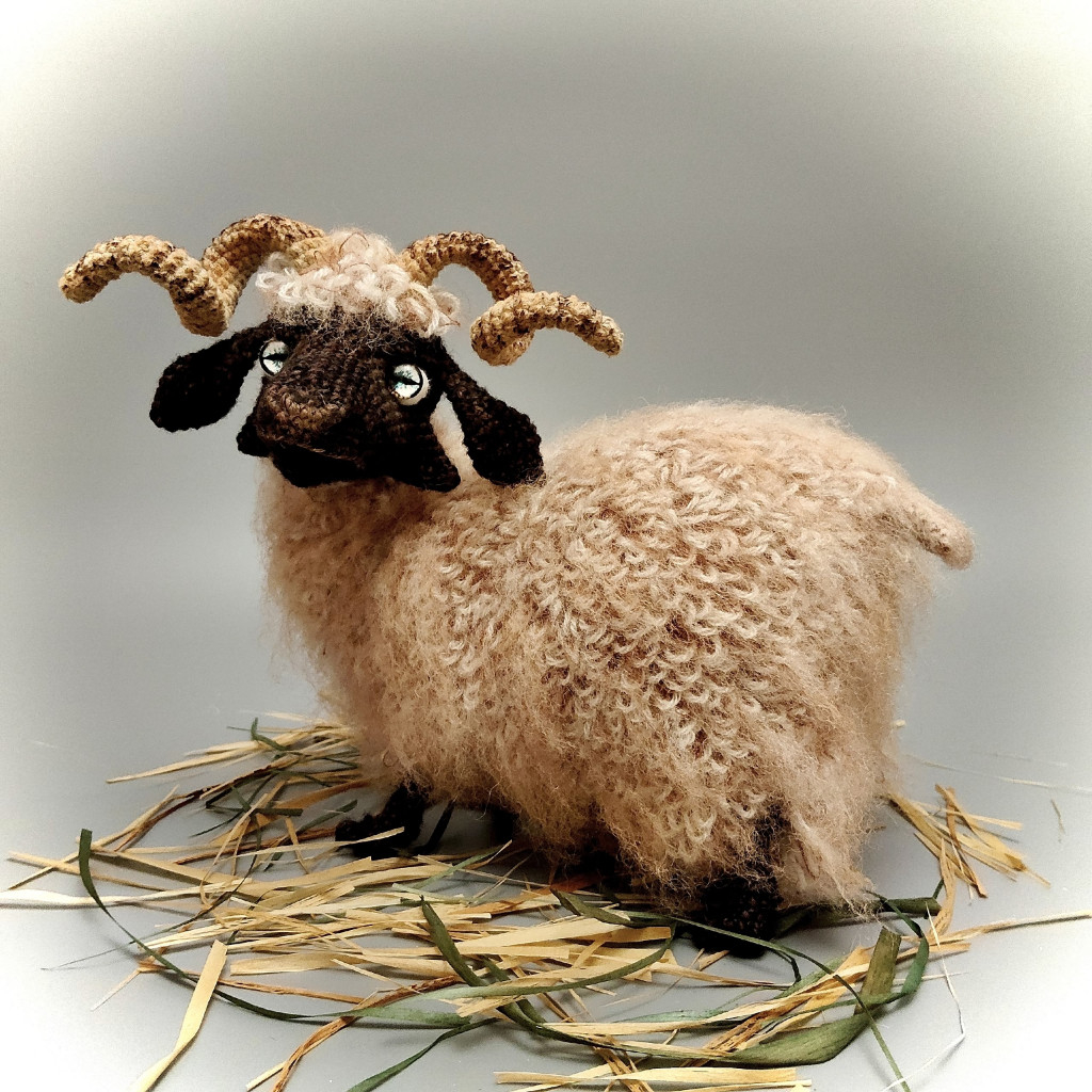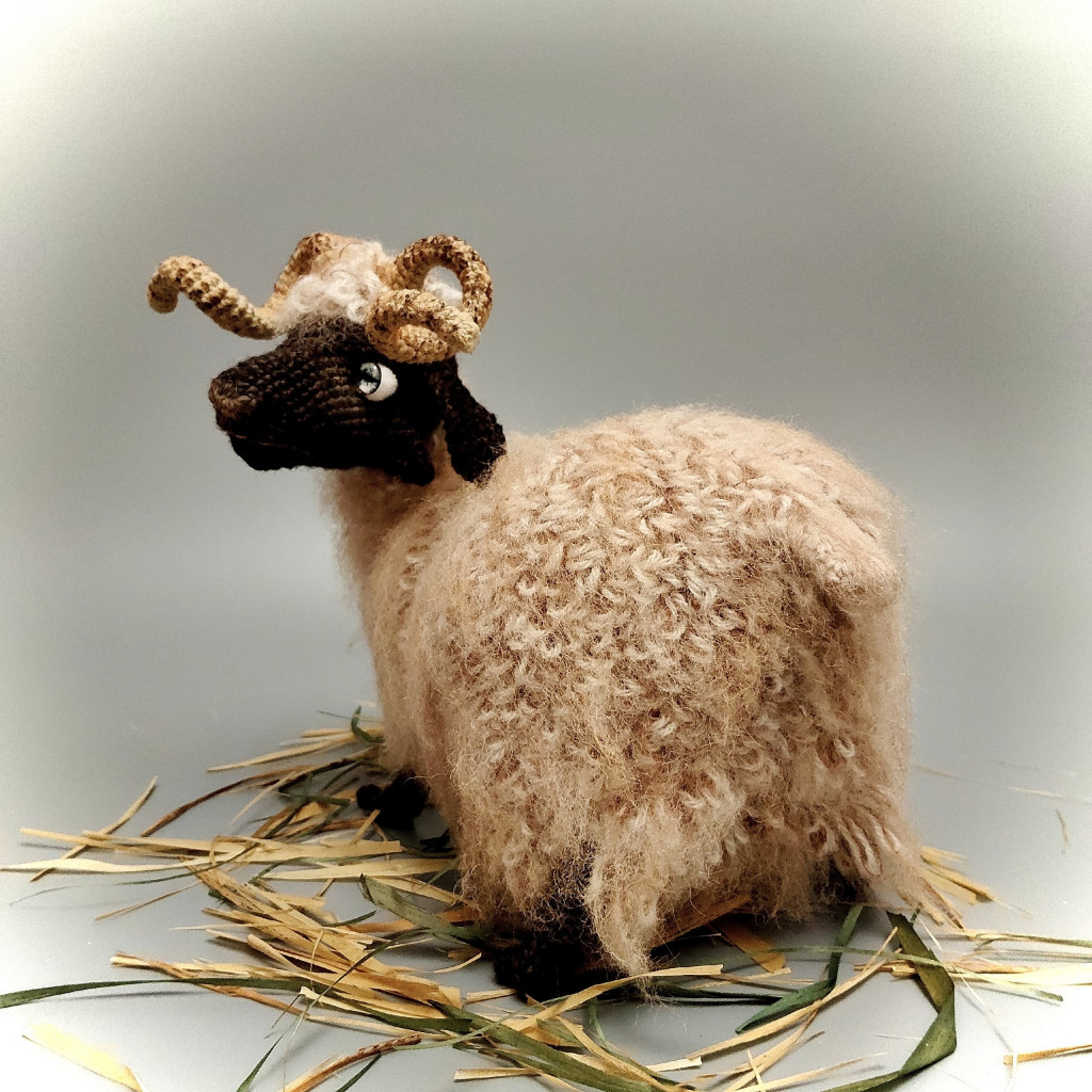 Основные характеристики - Игрушка цельновязанная, без пришивных деталей, нужно будет только сшить несколько отверстий, но там все очень просто. Внутри – проволочный каркас, можно будет поднимать/опускать/поворачивать голову, сгибать ноги в коленях, менять положение ног. Основное положение – стоя, можно усадить. Размер игрушки, связанной из пряжи 100гр-260м, у меня получился 16х18см. Размер без учета рогов и хвоста.