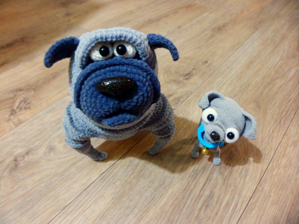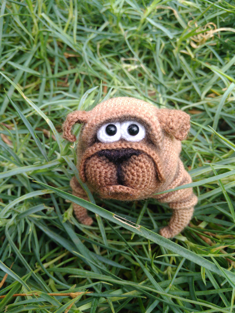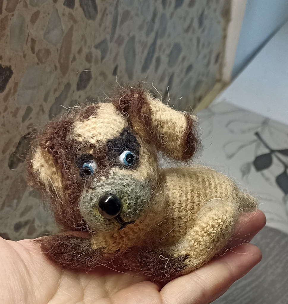 Первая вязанная собачка. Автора мк не знаю. Собачка 10см. Может лежать и сидеть