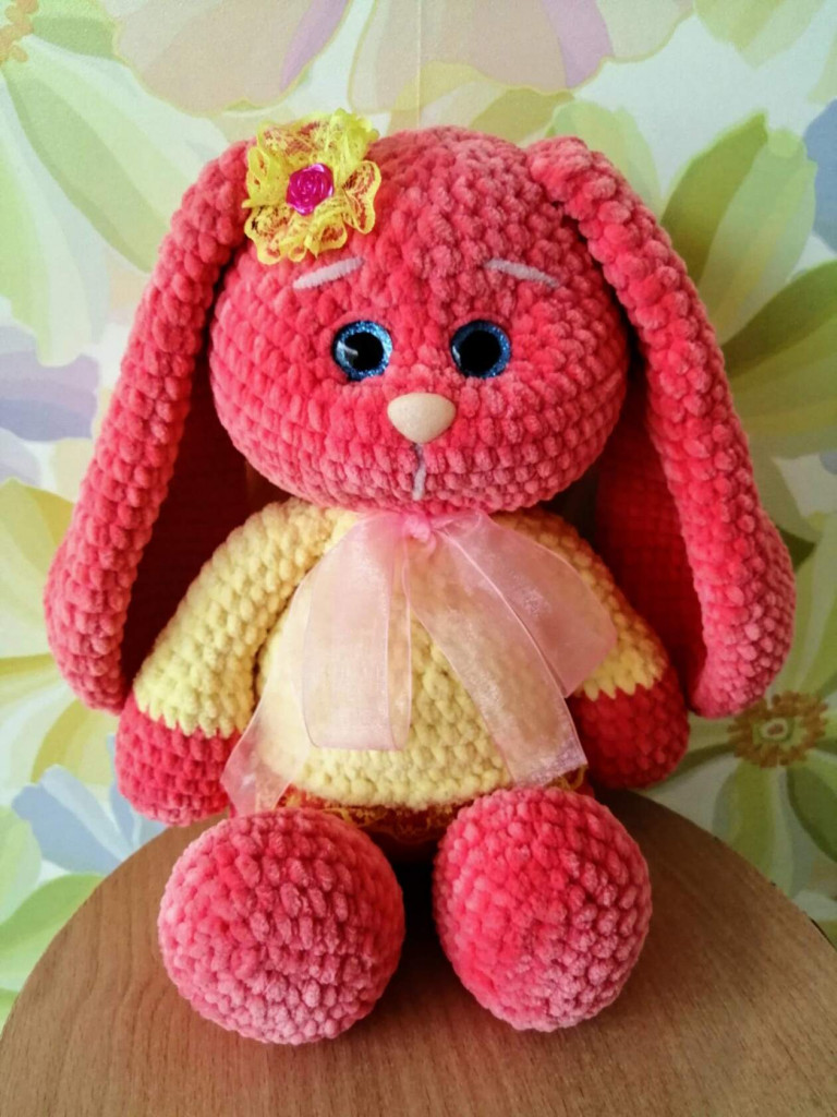 А эта зайка из остатков пряжи