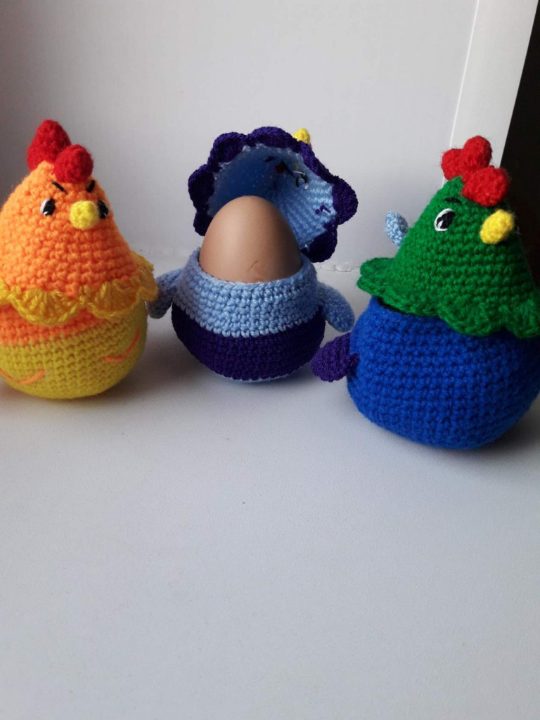 Птицы вязались различные. Это и петрушки, и цыплята, и совы (таких много связала) и самые разные.