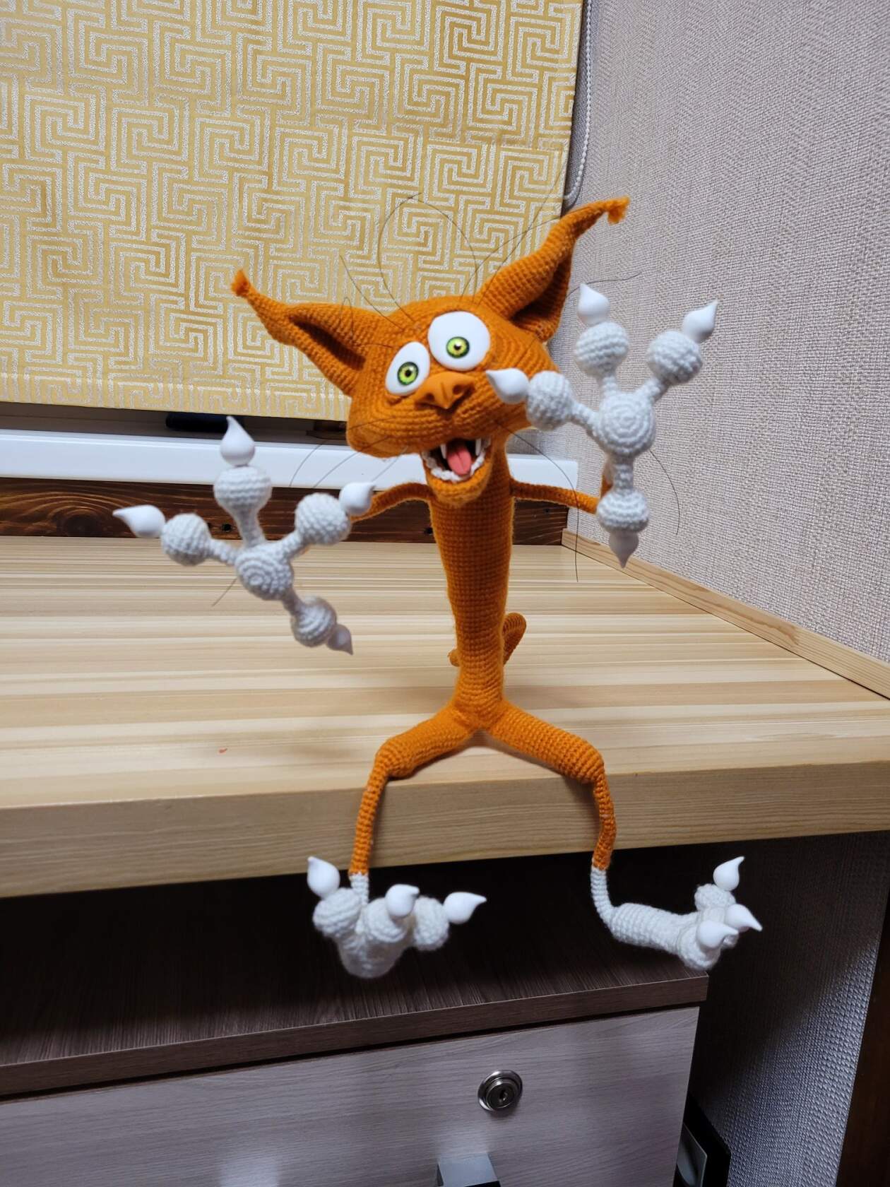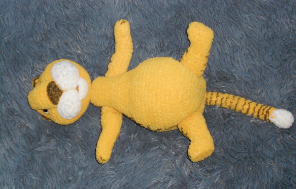 связан из Ализе Софти , полоски - маркер по ткани. рост зверя))))- больше 30 см. умен, добродушен, в меру игрив.