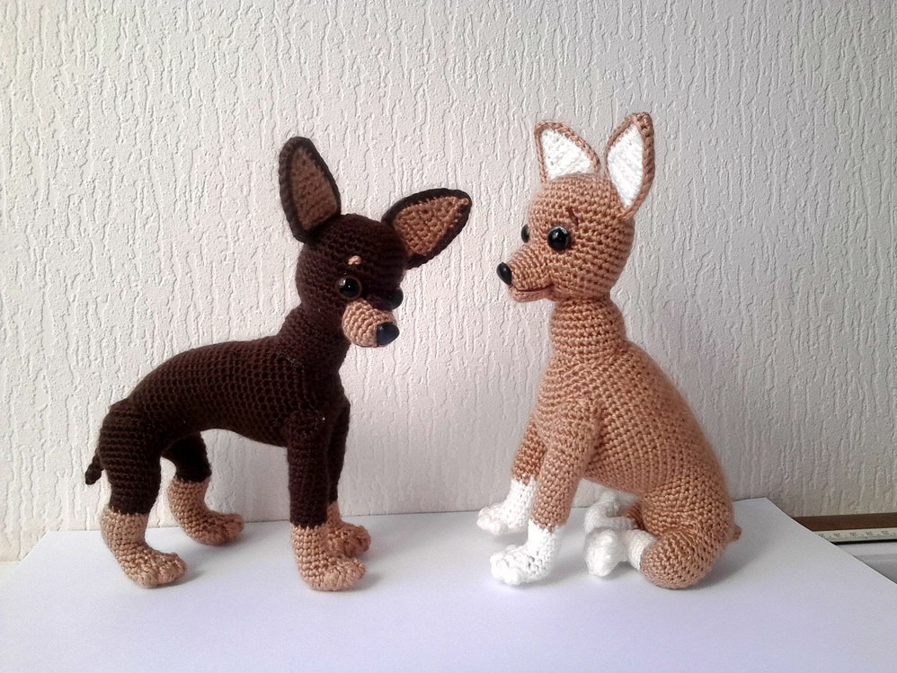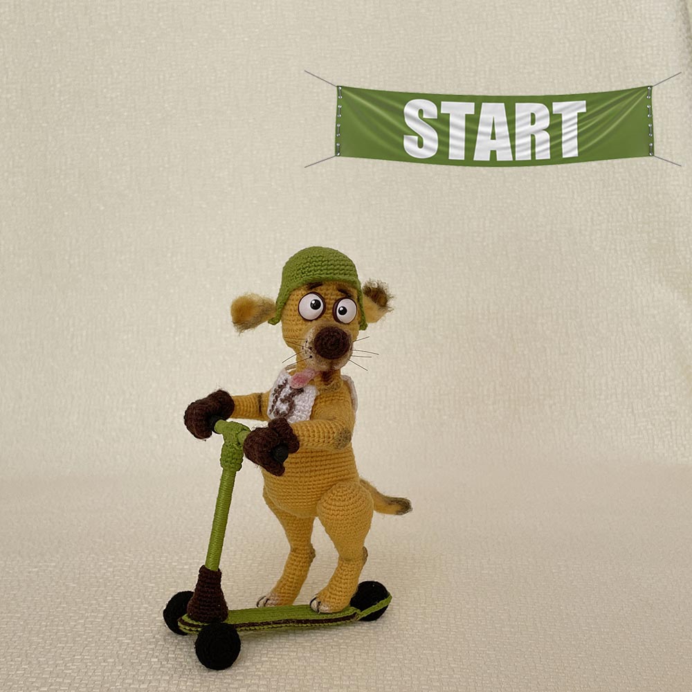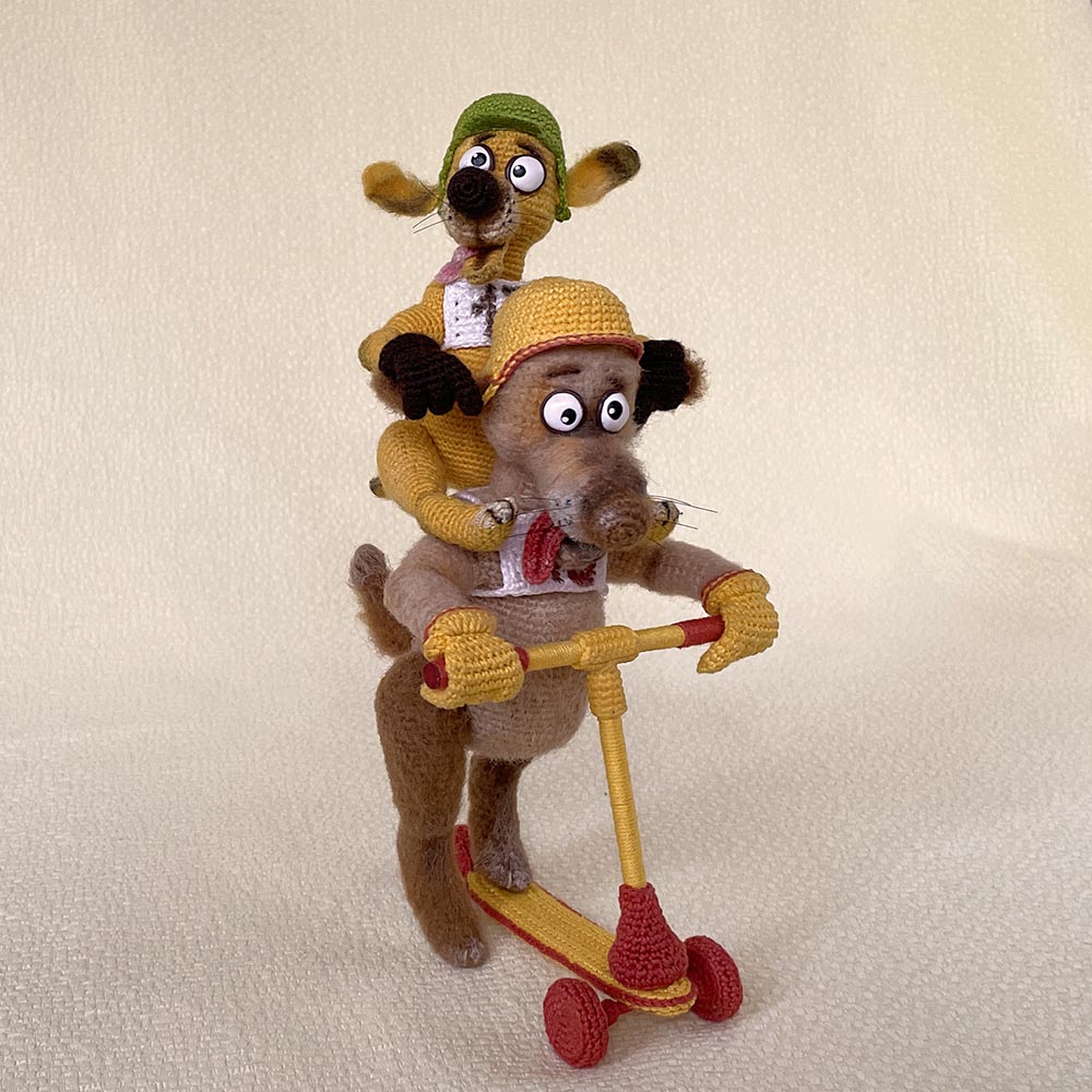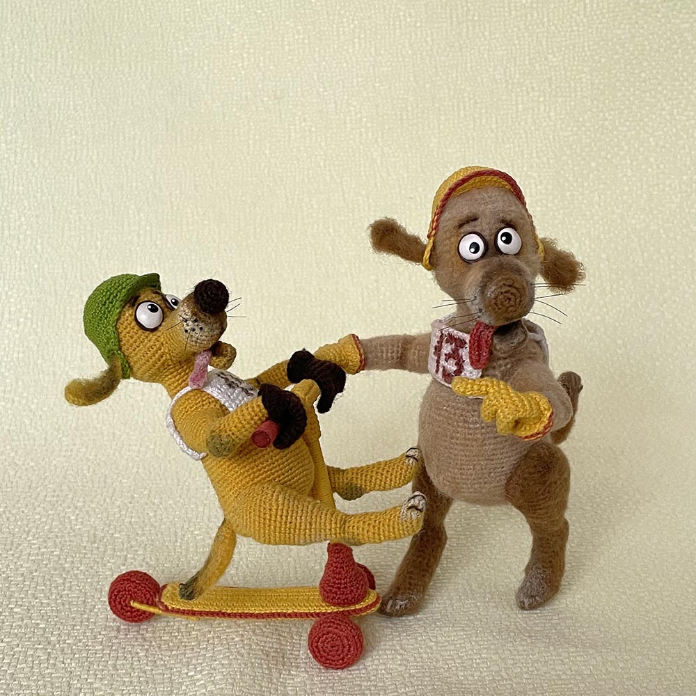 Псы самокатчики - Дизель и Баламут. Связаны из Ализе лана голд 800 (рост собаки13 см) и Ализе ангора голд омбр батик (рост игрушки 17 см).