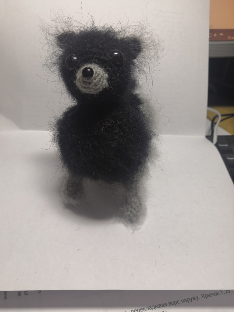 Связан из yarnart tecno и альпаки стрейч. Мягкий носик сделан из силикона.