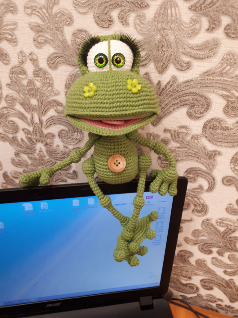Мой самый первый лягушонок. Связан по бесплатному описанию Анастасии Кирсановой