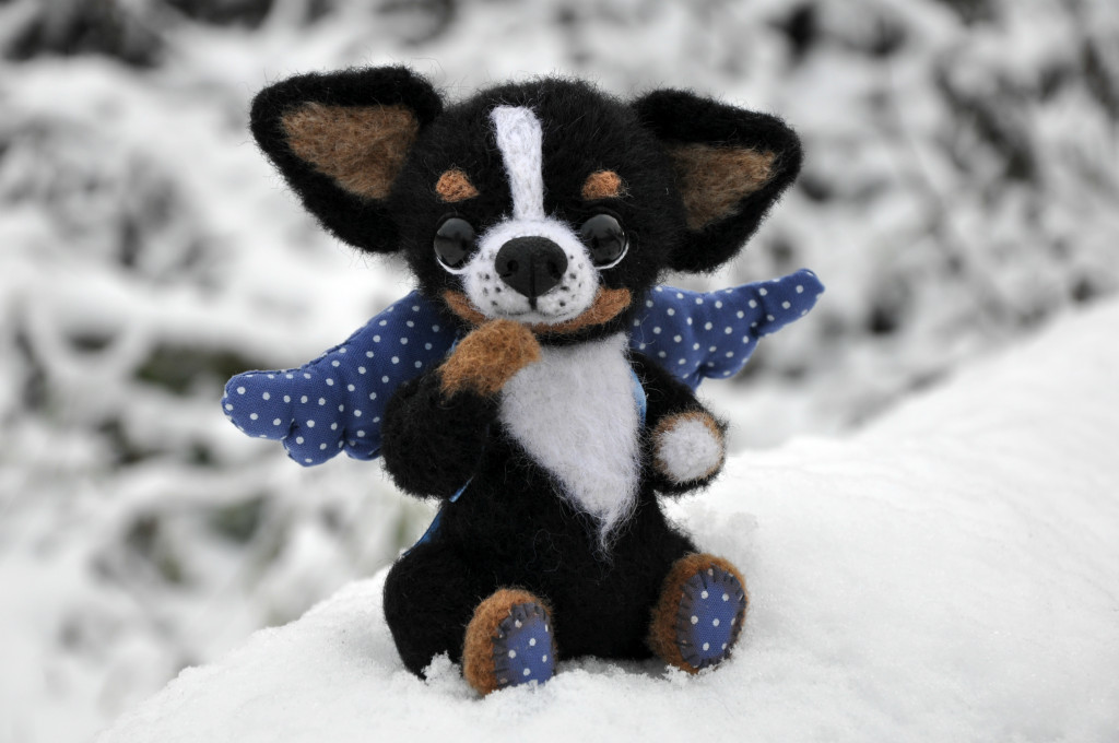 Пушистик связан по МК @Nerpa Забавные собачки, переведён мною на спицы.