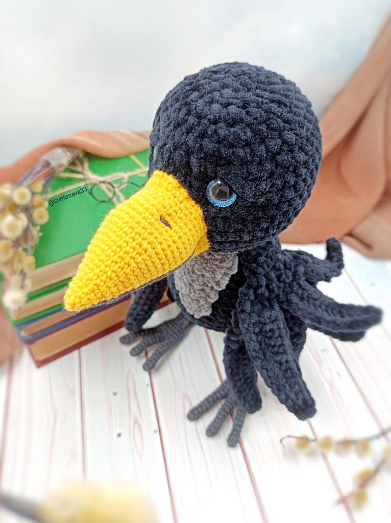 Ворона, смешная упитанная мадам🤣Связана по описанию Марии Боровой 🌷🌷🌷