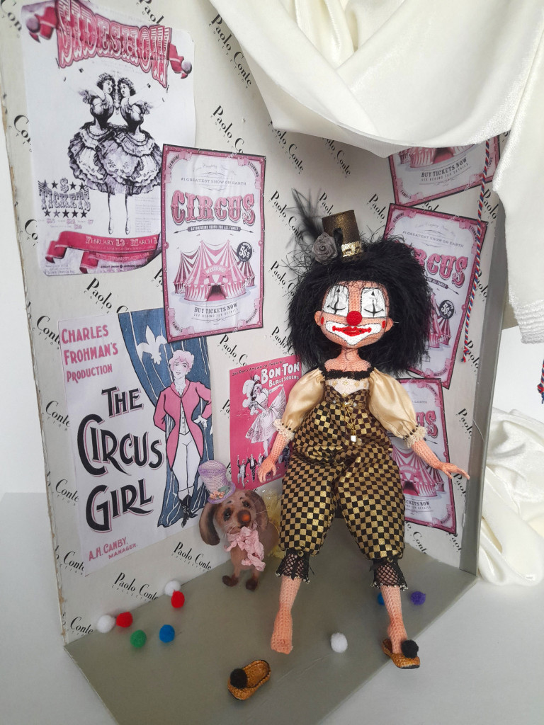 Композиция "Антракт". Клоунесса связана по МК Леси Медведевой, таксочка - по МК Веры Терекбаевой. Спасибо Авторам за отличные МК! :reverans2: