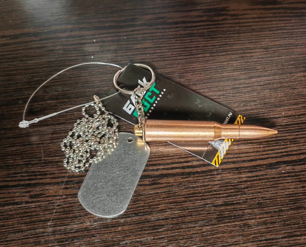 Видите золотой пакетик и рядом коробочку? Так вот в пакетике оказалось очень много всего! Сын просил передать от него лично огромное спасибо! Они с папой долго рассматривали пулю, пришли к выводу, что она настоящая! Ребенок готов был сразу бежать в мастерскую, где делают гравировки на жетон. Но! Всё уже было закрыто. Так что он ограничился поиском в интернете интересной армейской гравировки! Изображение