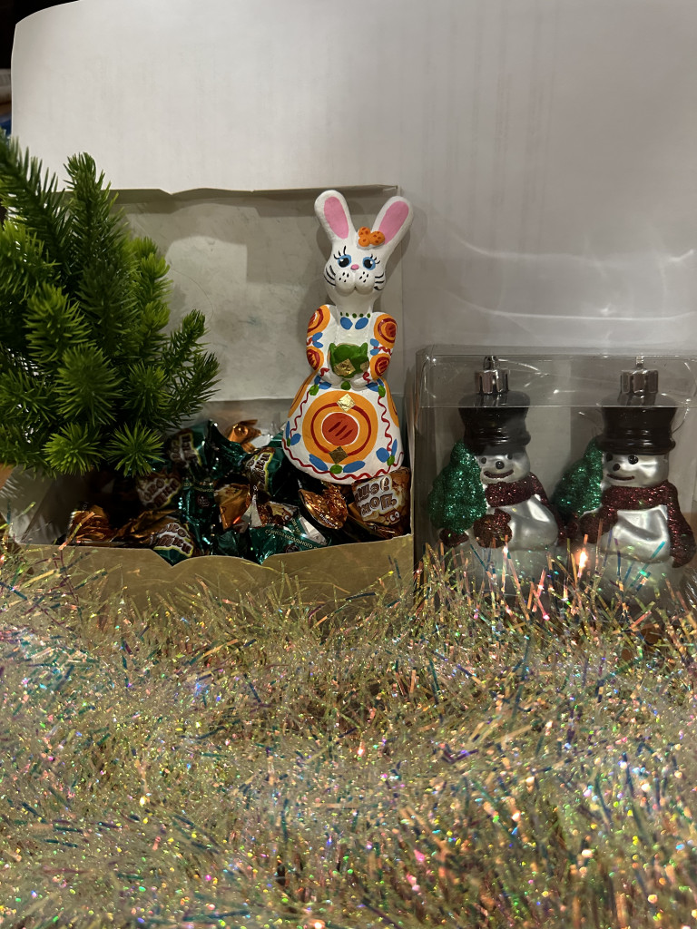 Дорогая моя Снегурочка, подарочек очень понравился, на следующий Новый год на елочке будут красоваться новые игрушки и переливающаяся всеми цветами мишура. Конфетки просто вкуснотища, все как я и люблю😘
