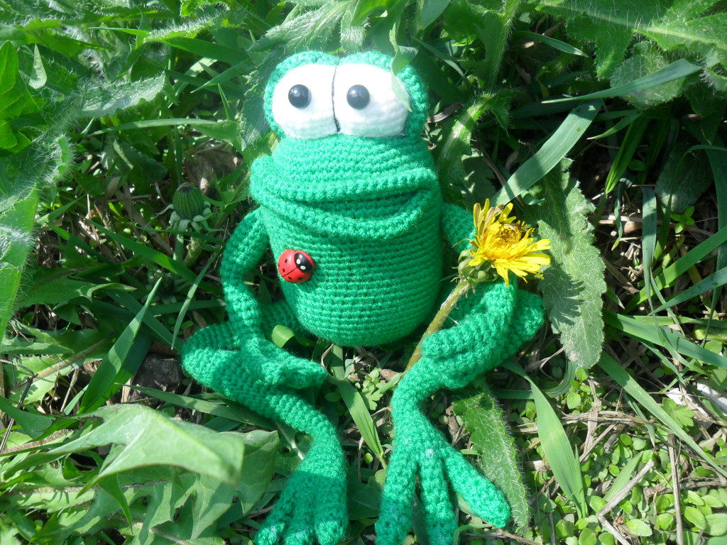 Сумка-лягушка связана из головы, идея из интернета, раскрашена дочей