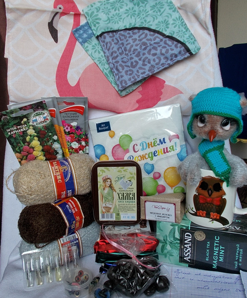 В посылочку кроме основного объекта обмена можно положить моточек ниточек, сладости, какую-нибудь атрибутику рукоделия. Получатель будет очень рад, такому дополнительному сюрпризу.