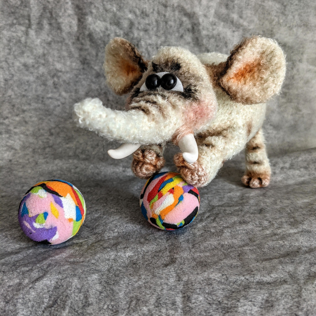 Мой слоник спицами. Впервые вязала спицами и надо много тренироваться.