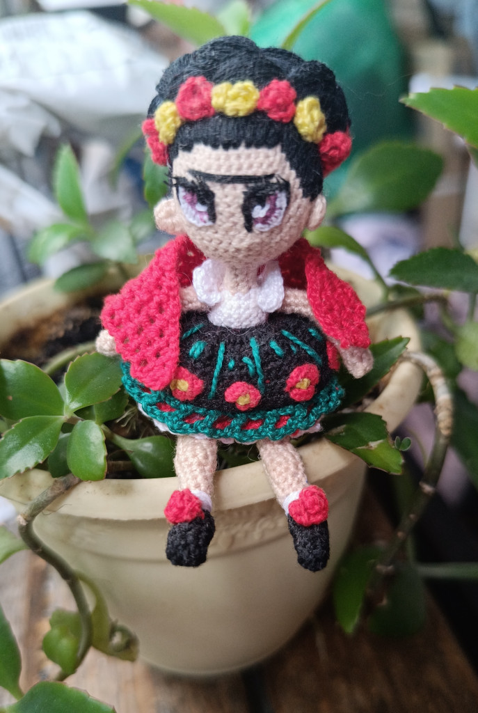 Очень хотелось связать миниатюрную куколку - рост 16 см от пяточек до макушки, вязала сама без МК по задумке в голове