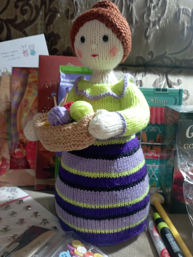 Загаданным изюмом была корзинка с клубочками и спицами, поэтому, когда увидела эту дама, сразу поняла, что моя))) теперь будет у меня стоять на почетном месте, как олицетворение вязания)))