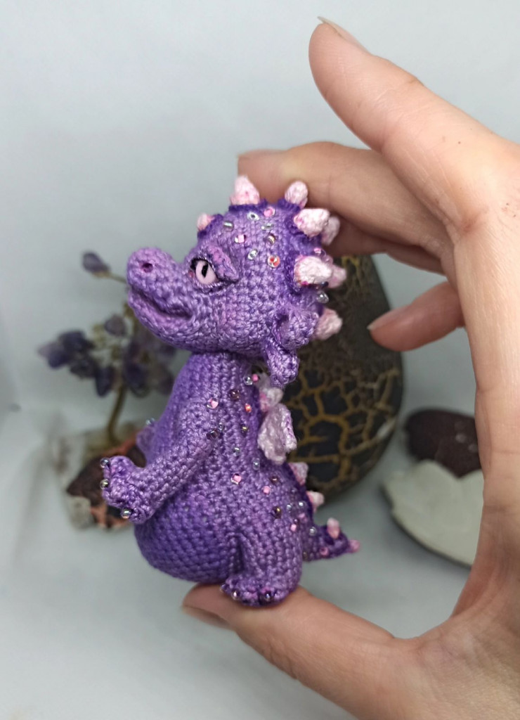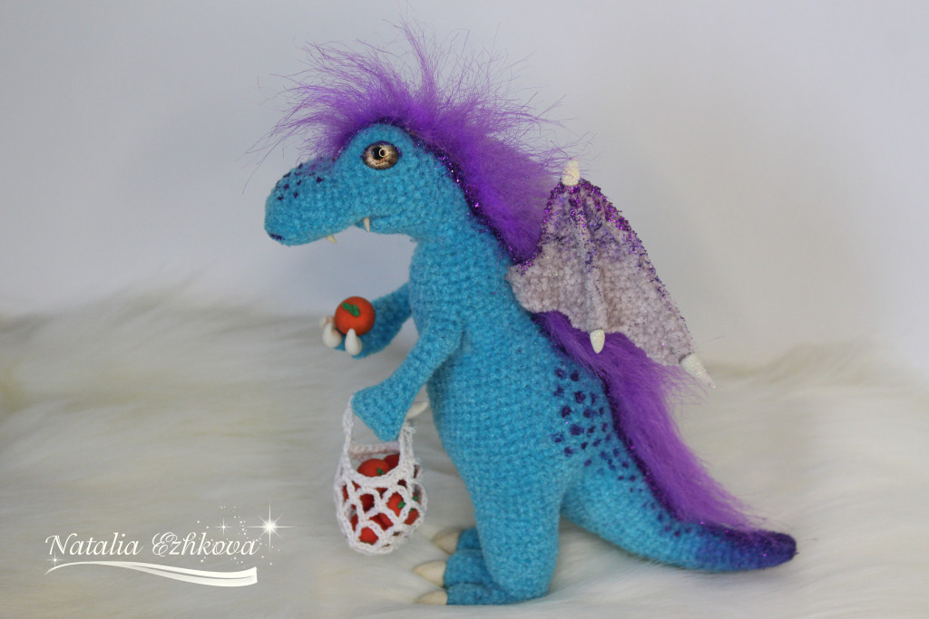 Динозаврики по МК Ольги Цепляевой. Все, кроме Рекса, связаны из Детской новинки, а вот Рекс из неопознанной пряжи крайне красивого цвета чего-то такого типа мха или тёмной листвы, потоньше, чем Новинка, и потому не выглядит большим и стррррашным)