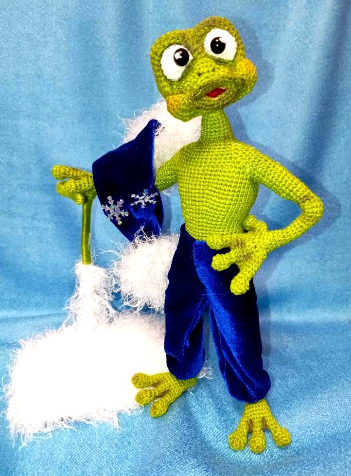 Лягушонку очень понравился наряд.Он решил - раз это у него в норке, значит это его. Он немного покрасовался, по воображал, а тут вдруг в дверку постучали..