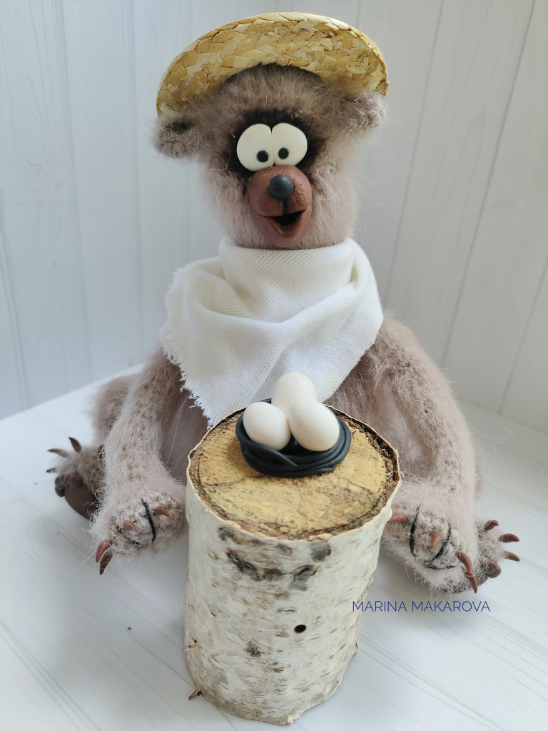 @Галина Асташова Связан из бобинного мохера, крючок кловер амур 1.25, шплинтовое крепление, ростом 16 см. Галечка, спасибо за возможность связать этого милягу!