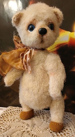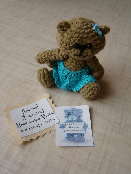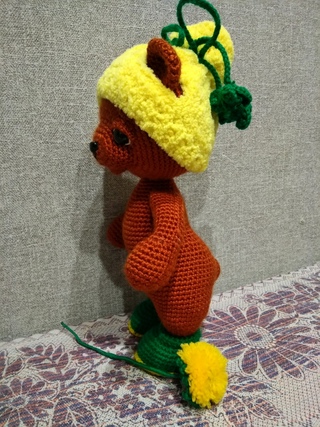 Мишка связан по описанию Ольги Гаевской, рост медвежонка 9 см, пряжа микровелюр, крючок 1.00. Одежда и колпак съёмные.