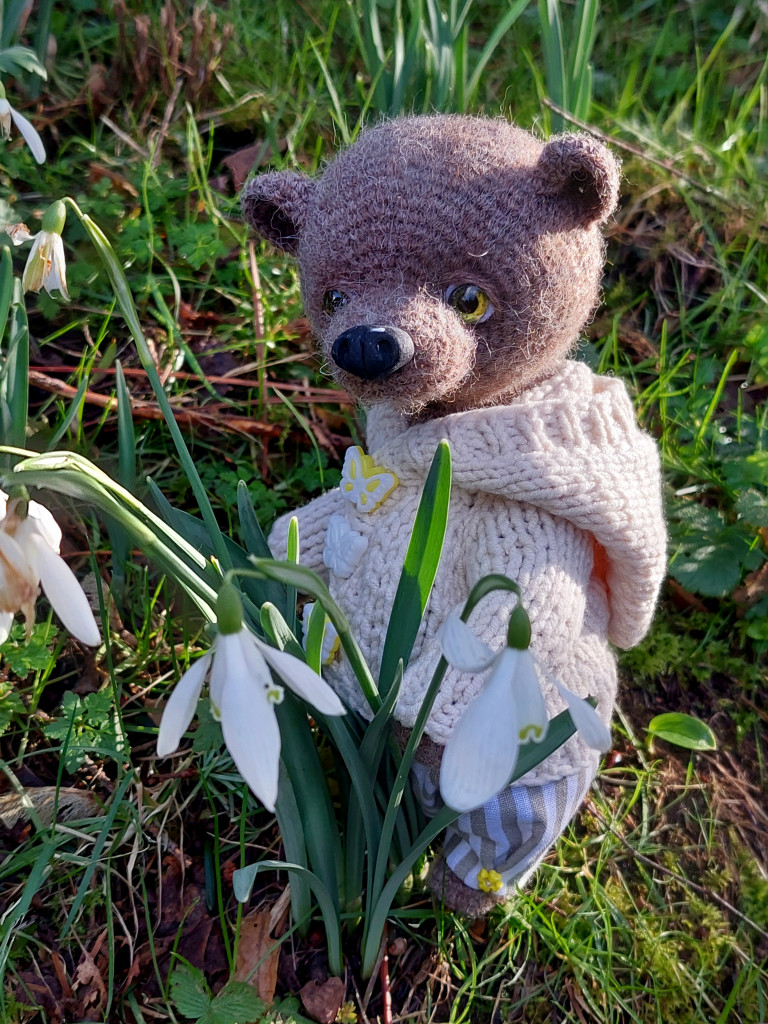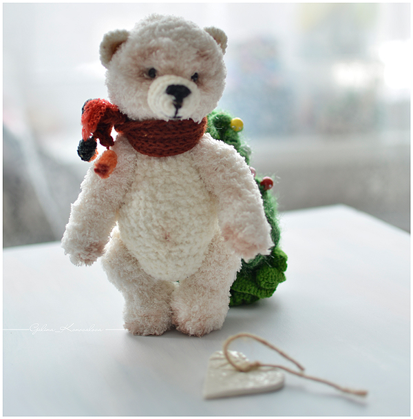 Тест для @Pola к онлайну "Белый медведь Гриша". Мой Гриша немного грузин, но от этого только обаятельнее). Могуч - 14,5 см роста, мохнат - ализе кид роял и аделия беби той по одной нитке, крючок 1,25 кловер. Хочет тепла и ласки, несмотря на суровость)))