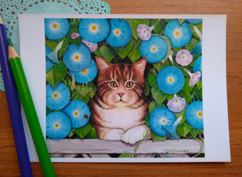 У - утро. Ещё в конверте были 2 открытки сюрпризные: девочка в цветах, кошечка с котятами.